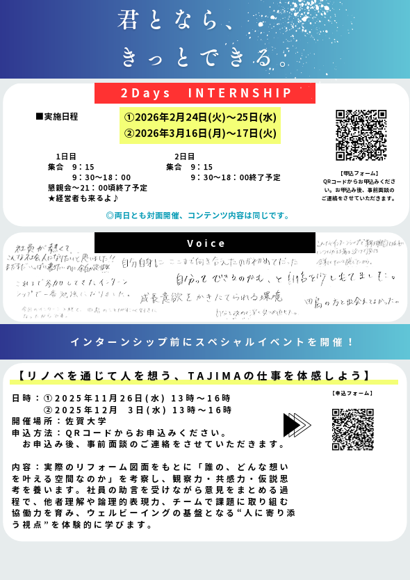 TAJIMAでは、今年の冬もインターンシップを開催します!
