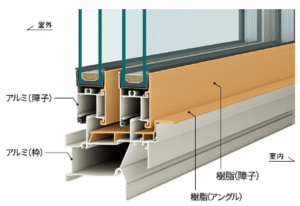優れた断熱性能:窓の室内側に、断熱性・防露性に優れた『樹脂』のメリットをプラスしたことにより、高い断熱性能を実現。